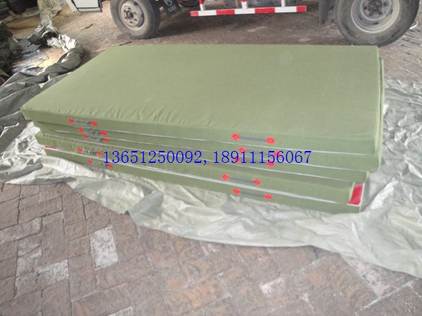 優質帆布表層,高壓海綿內芯; 不折疊;采用整塊23-38號密度高彈泡沫海綿; 外包防水帆布,防霉,深色,表面平整,無皺折,兩側有提手,便于移動。3*3綠色帆布,23#高彈泡沫海綿,價格:150元;