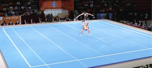 藝術體操場地:藝術體操場地與自由體操場地相近似。場地上鋪一層地毯,地毯下面有一層彈性適中的襯墊。比賽場地13米×13米,場地四周有寬度至少4米的安全區域。比賽館的高度至少8米。